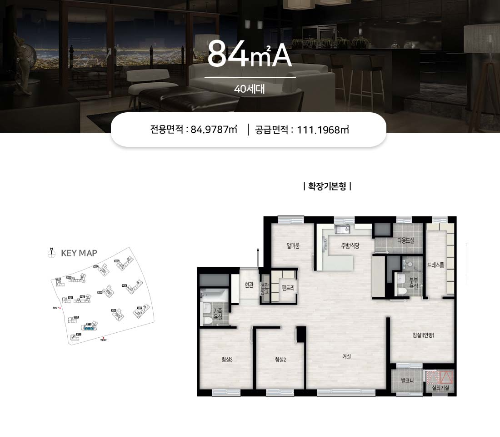 로 구성됩니다. 다양한 타입 구성으로 소비자 선택 폭을 넓혔습니다. 세대분리형 타입을 비롯해 옥외공간형, 오픈형 발코니, 펜트하우스 등 특화 평면 설계를 도입했습니다.