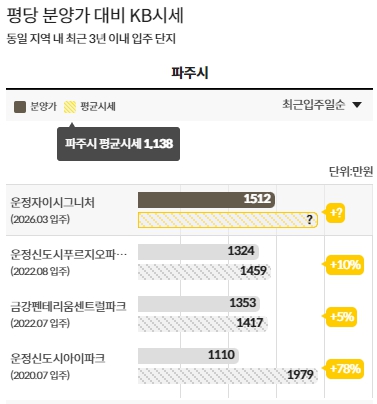 ■ 평당 분양가 대비 KB시세 (동일지역 내 최근 3년 이내 입주 단지)